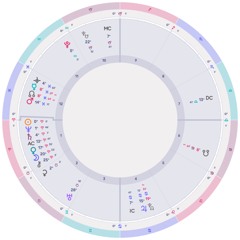 The moment the Sun crossed into Aries on the 20th — the exact second spring began — it brought company. Saturn, Neptune, the Moon, Venus, Chiron: six bodies all rising together over the horizon, all in that same bold, forward-charging, warrior-energy sign. On paper, this looks like a statement. A declaration. We are here, we are moving, the year begins now.